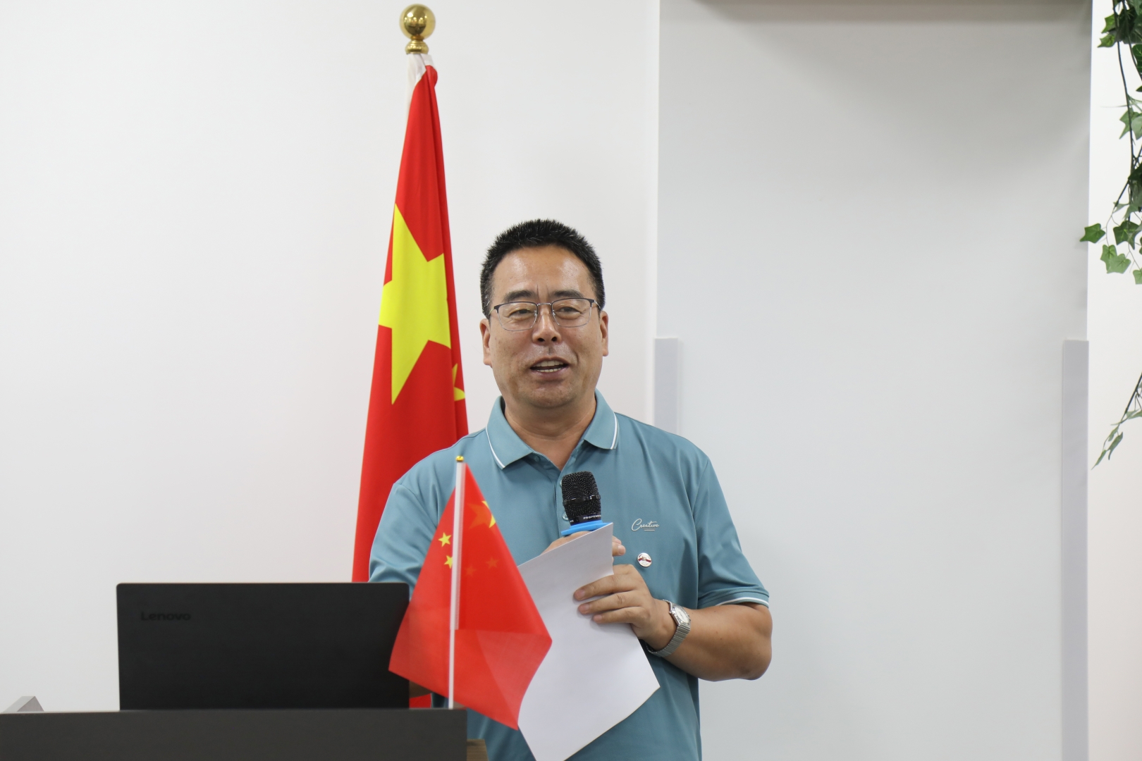 北京新領先醫(yī)藥科技發(fā)展有限公司副總裁、臨床事業(yè)部總經(jīng)理張容火介紹參會人員,闡釋本次四方黨建暨紀念抗戰(zhàn)勝利80周年活動的意義。