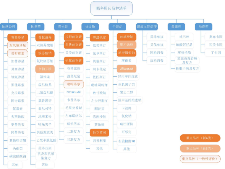 小類格局來看,眼部血管病變治療藥、干眼癥用藥、抗感染藥、抗炎藥占據(jù)主要市場地位。