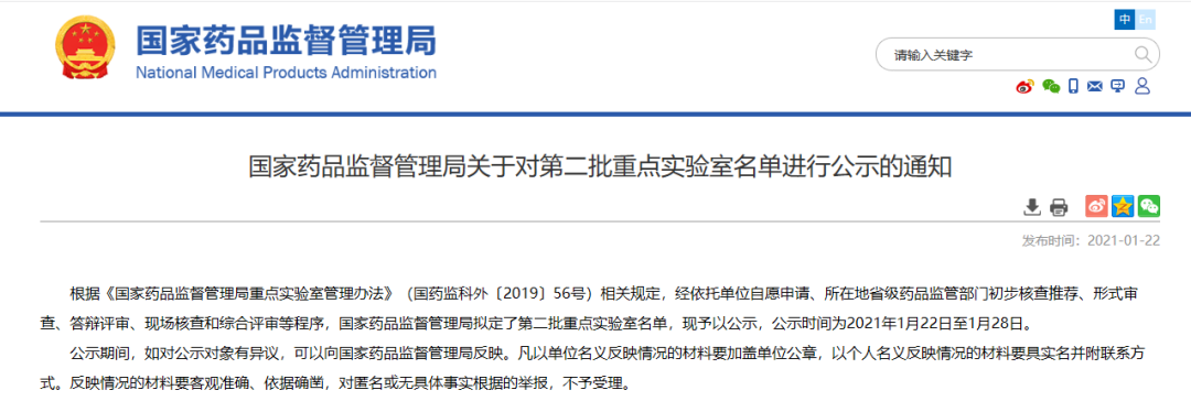 關(guān)于對第二批重點實驗室名單進行公示的通知