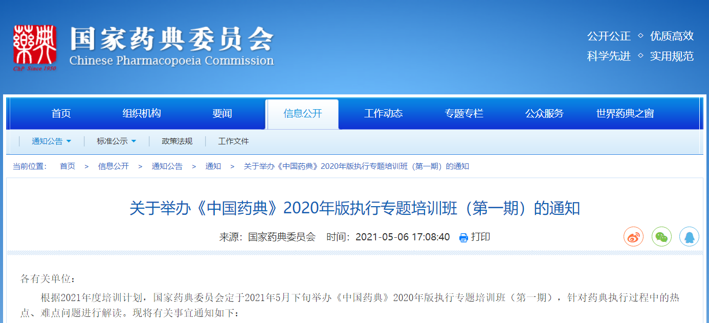 關(guān)于舉辦《中國(guó)藥典》2020年版執(zhí)行專題培訓(xùn)班(第一期)的通知