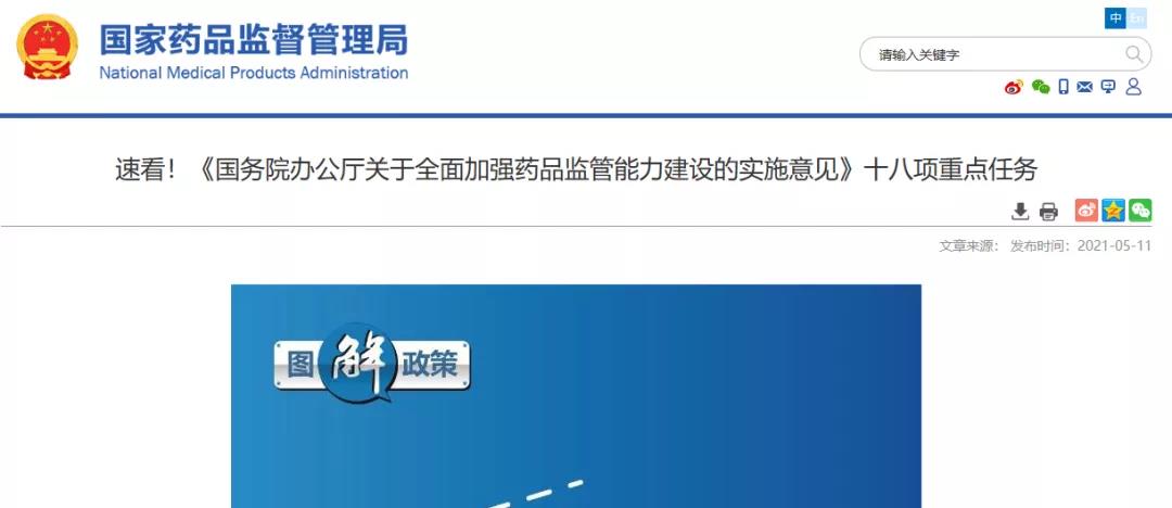 國務(wù)院辦公廳關(guān)于全面加強藥品監(jiān)管能力建設(shè)的實施意見(國辦發(fā)〔2021〕16號)