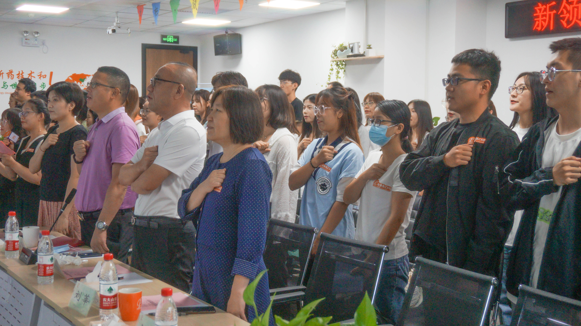 醫(yī)藥與人民生命健康息息相關(guān),身為醫(yī)藥人,肩負(fù)醫(yī)藥興國的使命和責(zé)任,在新新領(lǐng)先人入職之際,董事長(zhǎng)陶新華先生、總裁高世靜女士、常務(wù)副總裁劉昆先生攜公司高層領(lǐng)導(dǎo)和2021屆應(yīng)屆畢業(yè)生共同宣讀醫(yī)藥人誓詞。