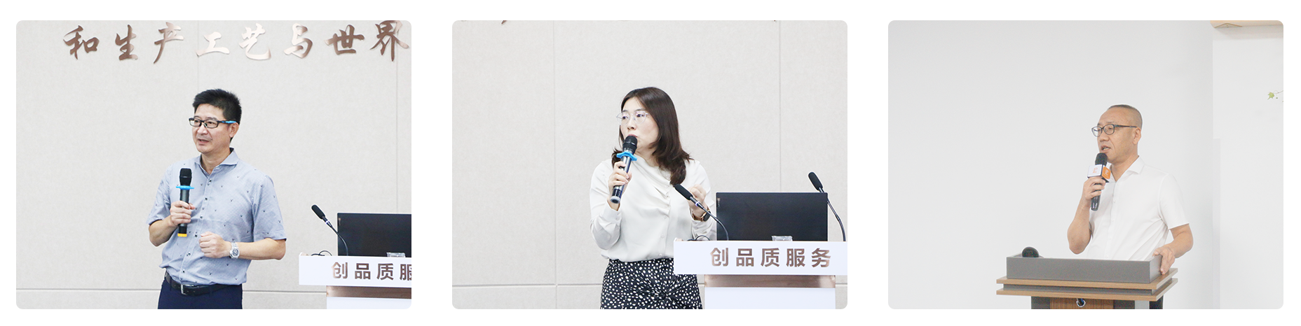 從左到右依次為:新領(lǐng)先董事長(zhǎng)陶新華先生、總裁高世靜女士、常務(wù)副總裁劉昆先生