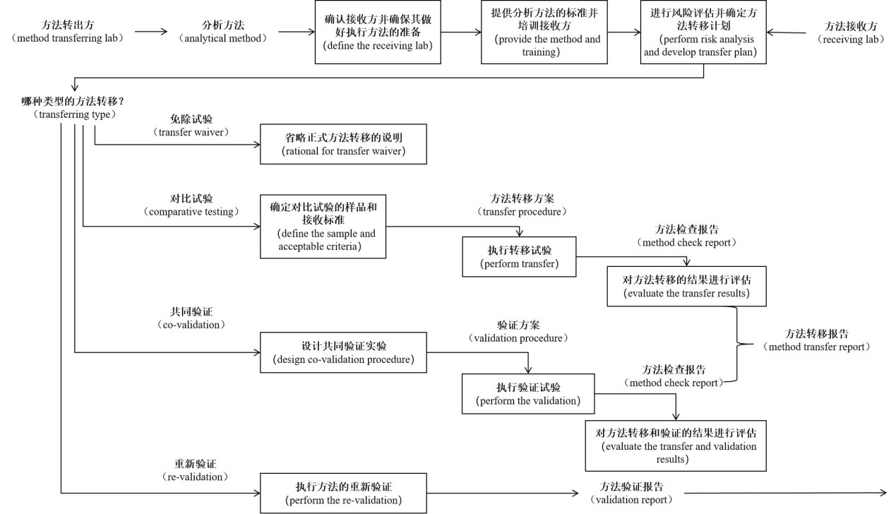一個(gè)實(shí)驗(yàn)室建立好分析方法并經(jīng)過驗(yàn)證后,當(dāng)其他實(shí)驗(yàn)室(方法接收實(shí)驗(yàn)室)在使用這個(gè)方法進(jìn)行檢驗(yàn)檢測(cè)時(shí),這就牽涉到方法在兩個(gè)不同實(shí)驗(yàn)室之間的轉(zhuǎn)移問題,接收方法的實(shí)驗(yàn)室需要證明其能夠成功的在本實(shí)驗(yàn)室中運(yùn)行該方法。