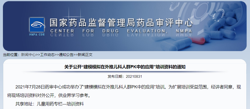 關(guān)于公開“建模模擬在外推兒科人群PK中的應(yīng)用”培訓資料的通知