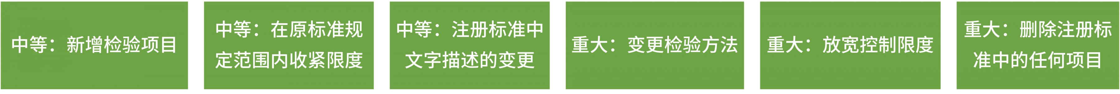 依據(jù)變更對藥品安全性、有效性、質(zhì)量可控性的影響,將藥學(xué)變更分為微小變更、中等變更和重大變更,由申請人依據(jù)對產(chǎn)品的理解進(jìn)行評估及相應(yīng)的研究、申報(bào)工作。