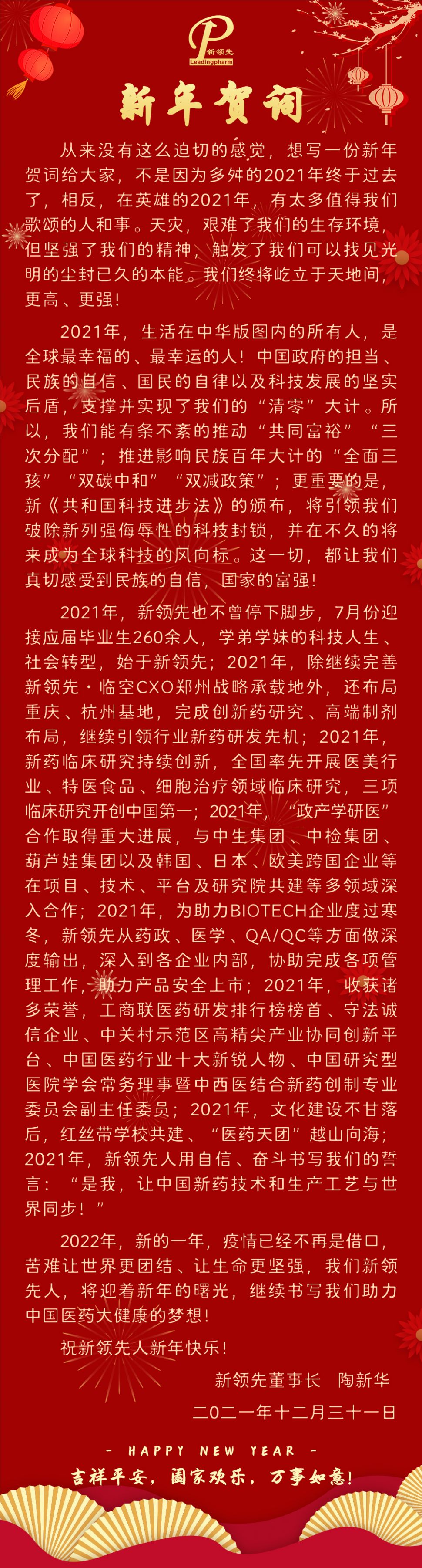 新領(lǐng)先醫(yī)藥2022年新年賀詞