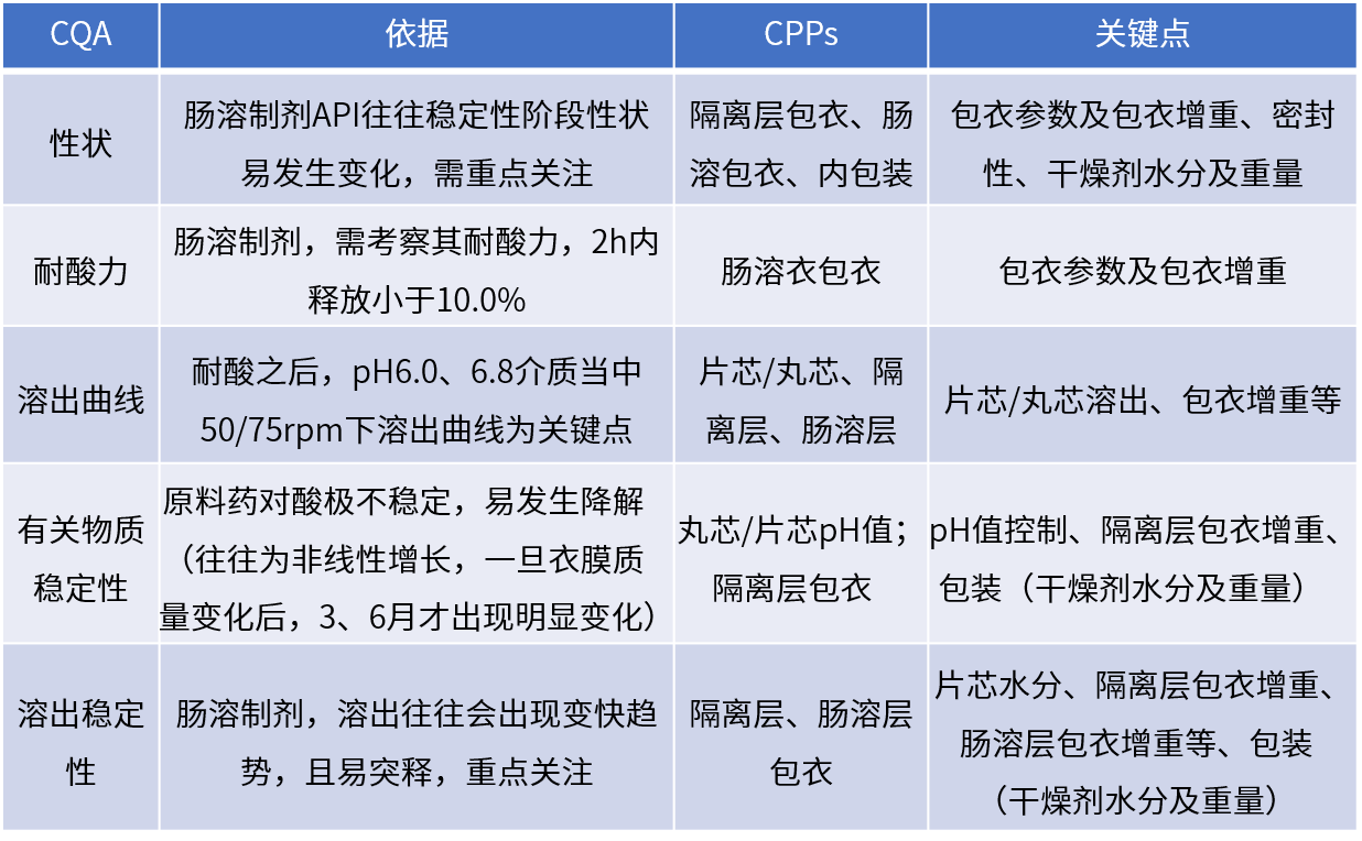 復(fù)雜制劑由內(nèi)而外進行研究,依次為參比制劑剖析、處方前研究-原輔料、片芯/丸芯處方篩選、隔離層包衣研究和腸溶包衣研究。