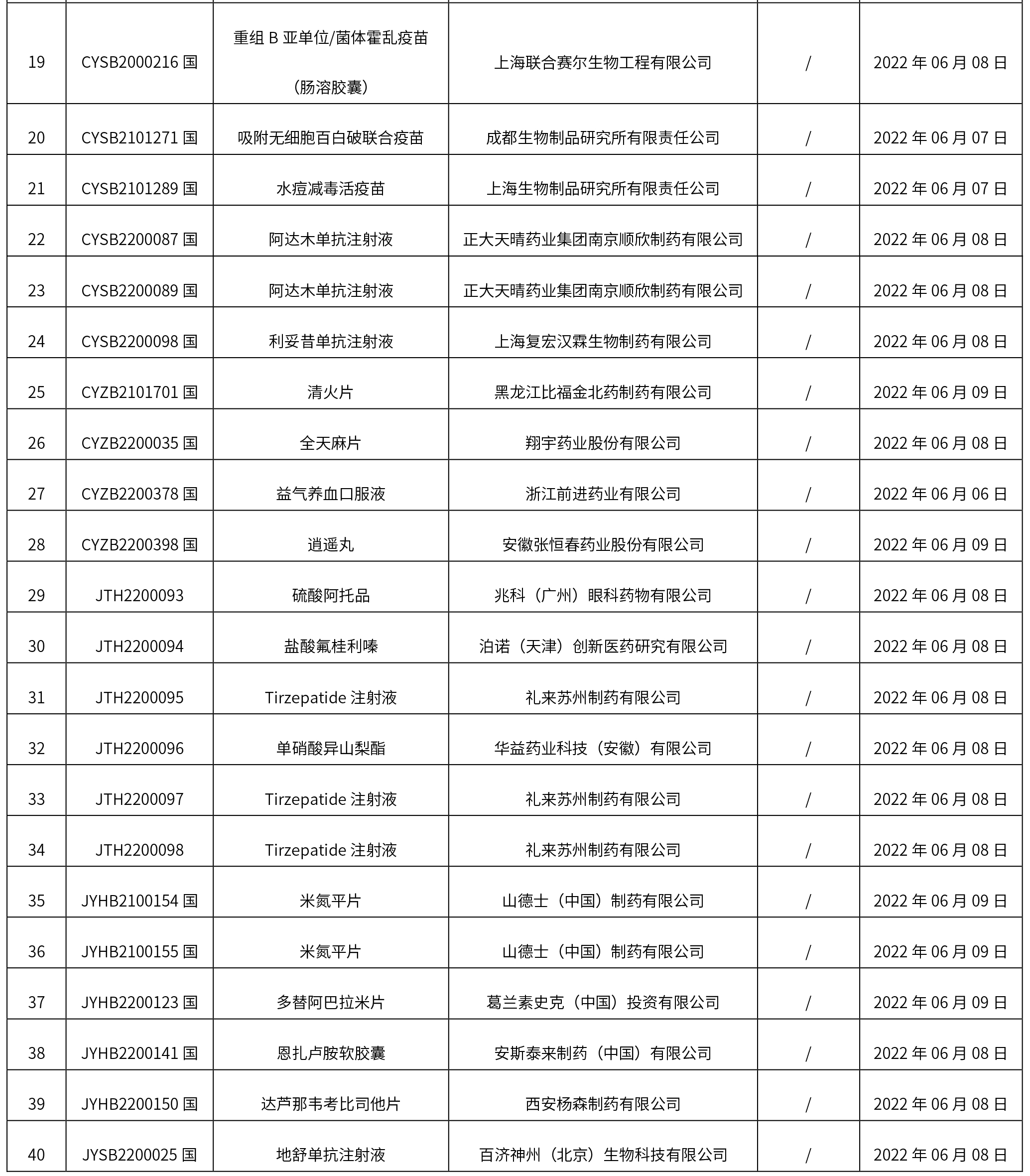 1、本周共計40個品規(guī)取得藥品批準(zhǔn)證明文件,其中一致性評價品規(guī)2個,注射劑13個。