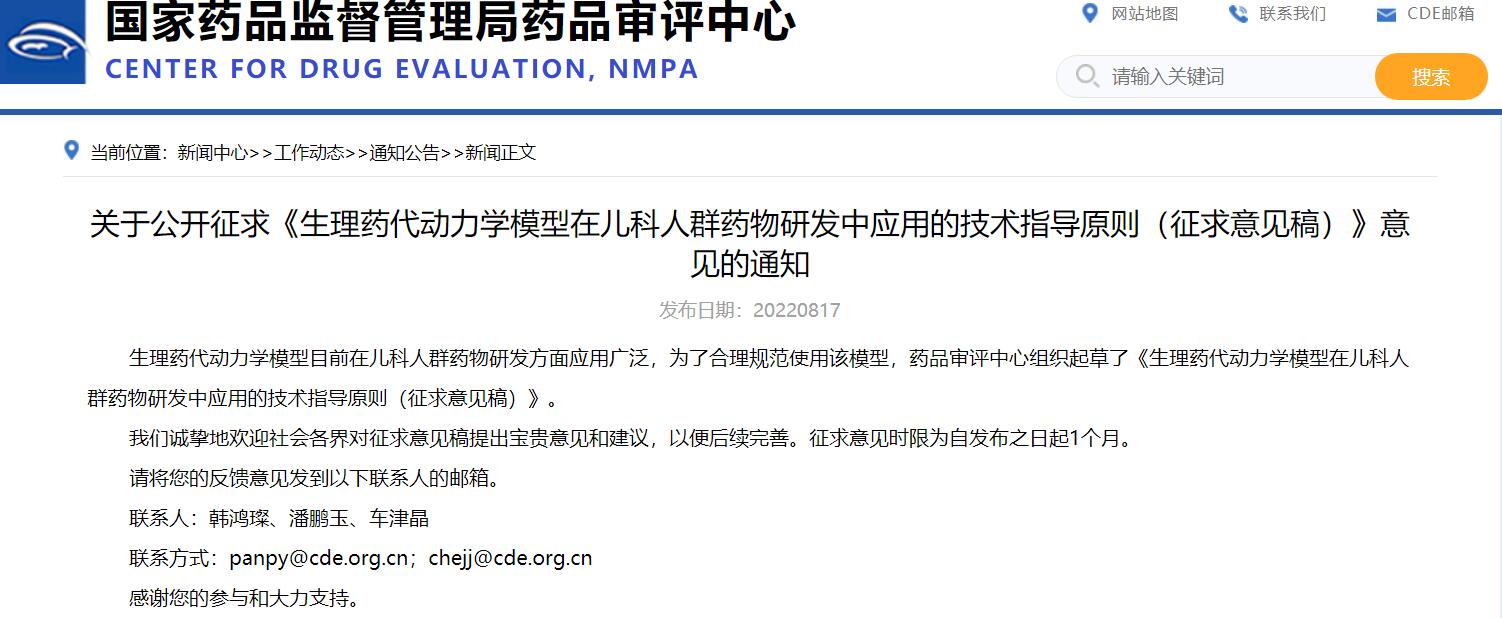關(guān)于公開征求《生理藥代動力學(xué)模型在兒科人群藥物研發(fā)中應(yīng)用的技術(shù)指導(dǎo)原則(征求意見稿)》意見的通知