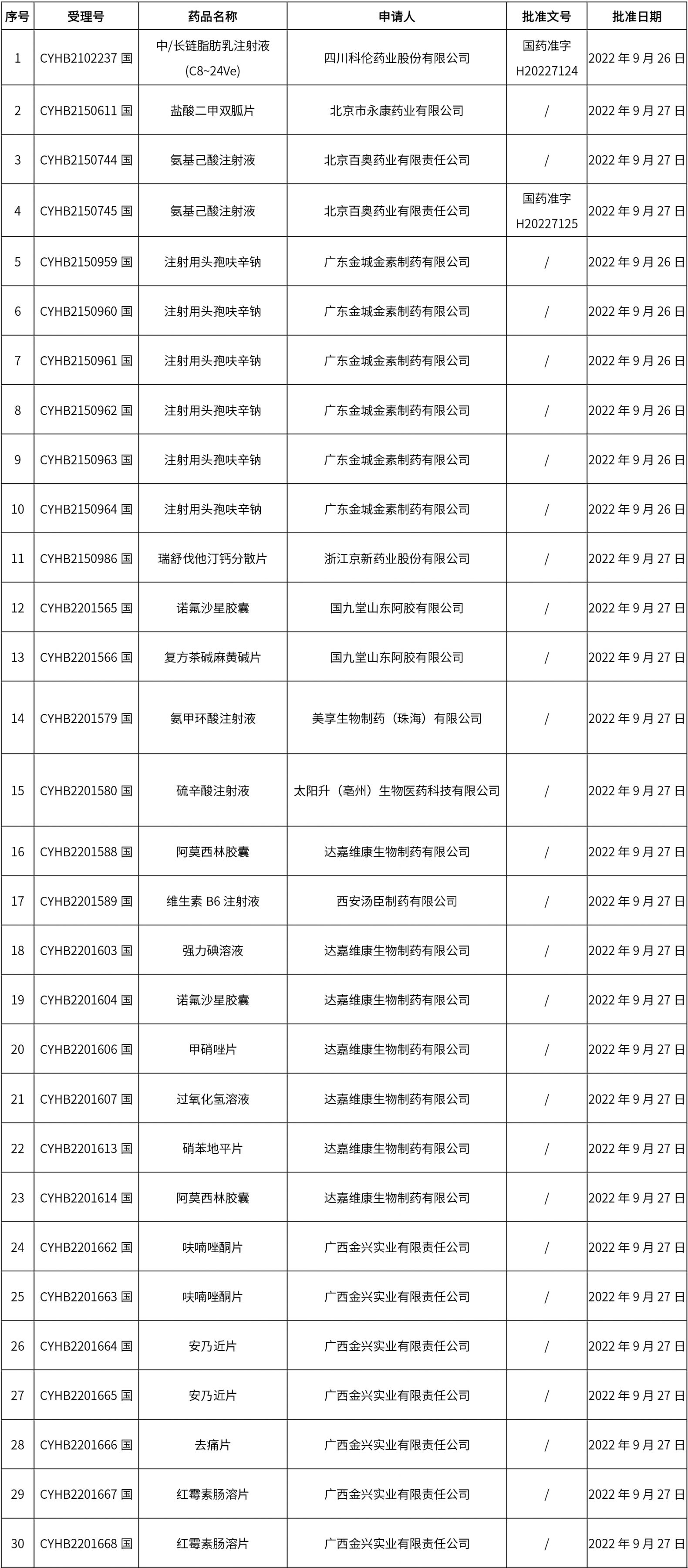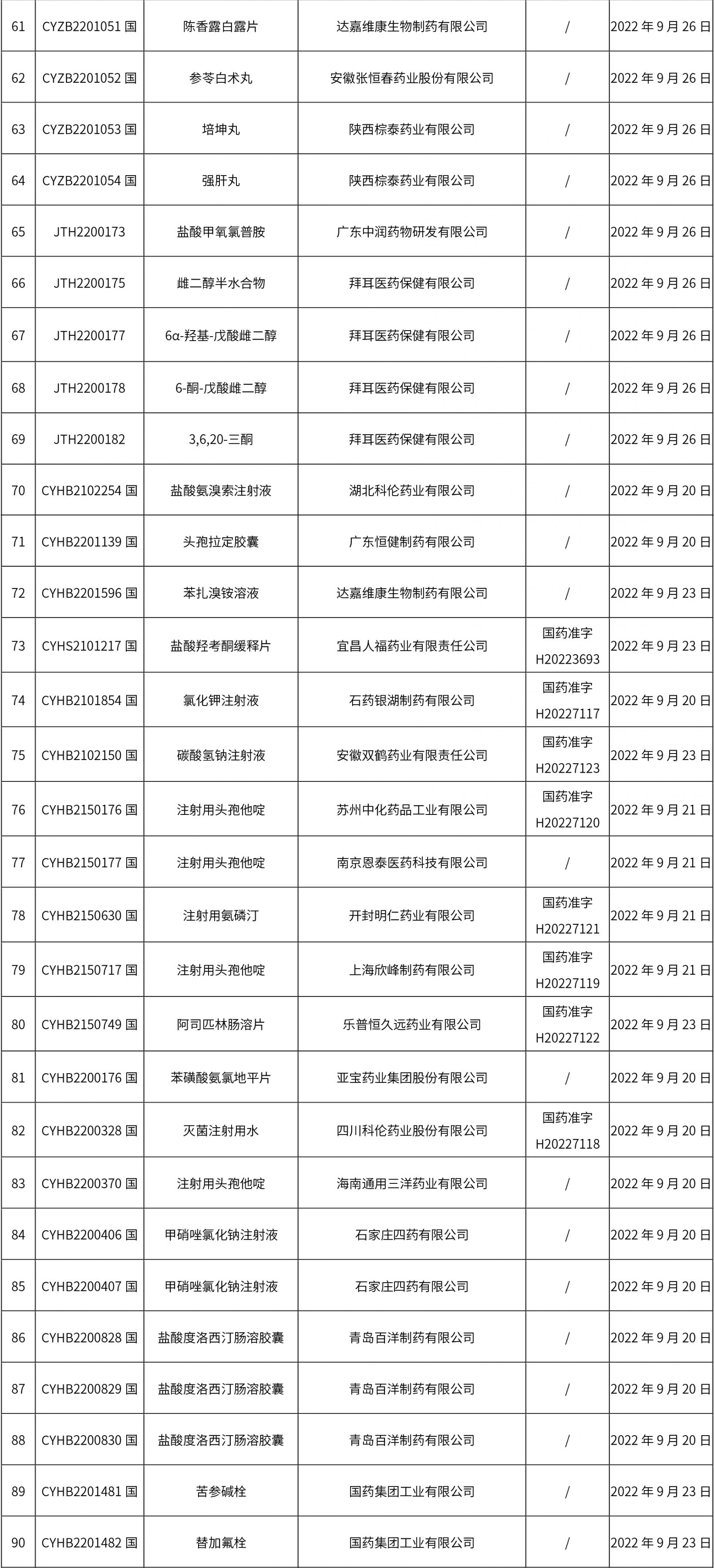 1. 本周(截止09.30中午12:15)共發(fā)布了211個品規(guī)的藥品批準(zhǔn)證明文件待領(lǐng)取信息,其中一致性評價27個,注射劑51個(其中1個為滅菌注射用水)。