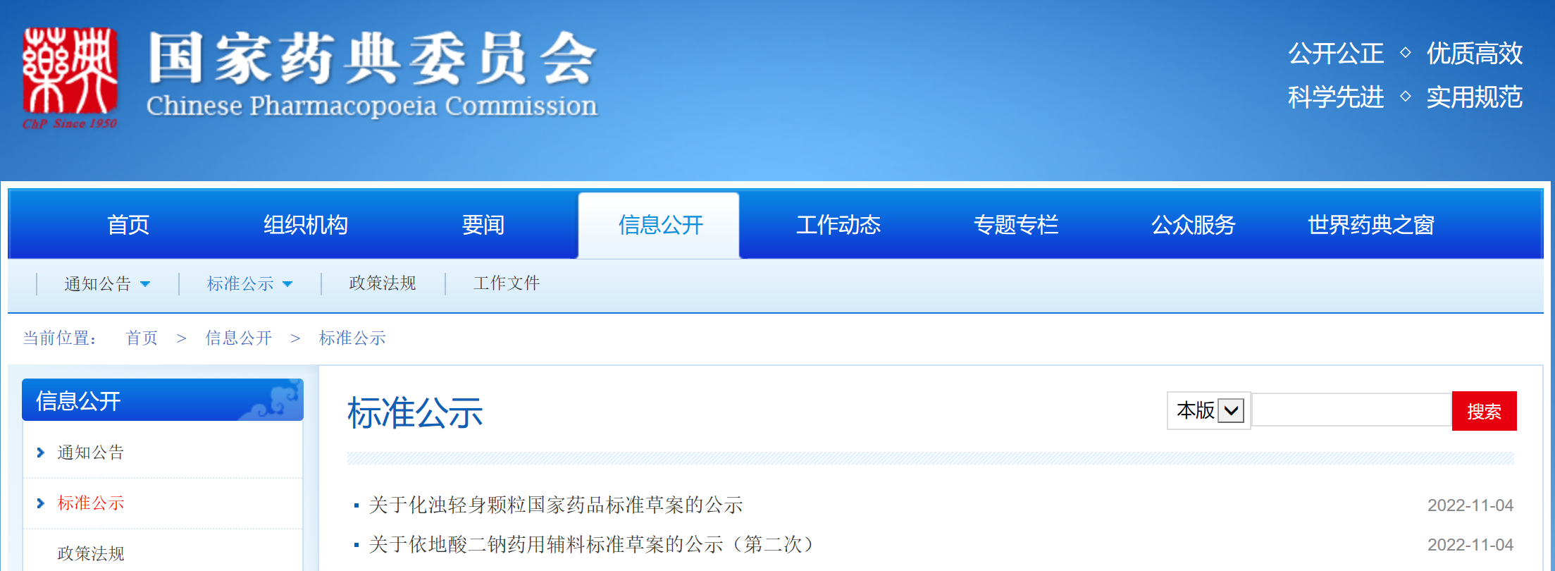本周發(fā)布化濁輕身顆粒國(guó)家藥品標(biāo)準(zhǔn)草案和依地酸二鈉藥用輔料標(biāo)準(zhǔn)草案的公示。