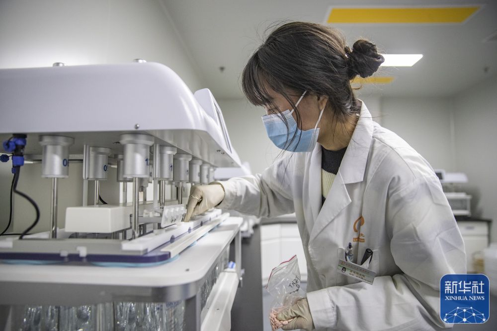 12月16日,在重慶市永川區(qū)新領(lǐng)先(重慶)生物醫(yī)藥一體化研發(fā)服務(wù)基地,新領(lǐng)先重慶研究院的研發(fā)人員在液相區(qū)對(duì)樣本進(jìn)行色譜分析。