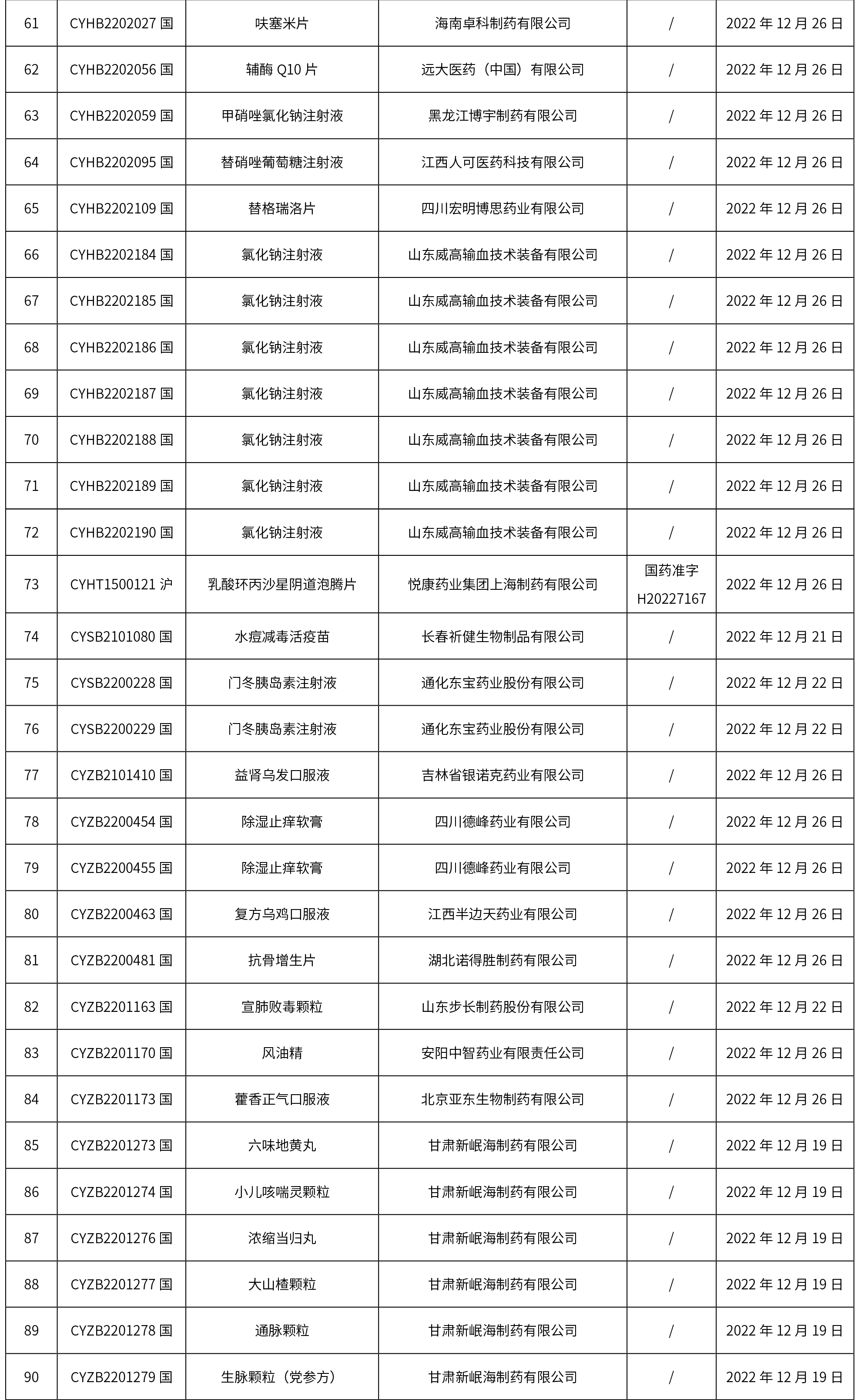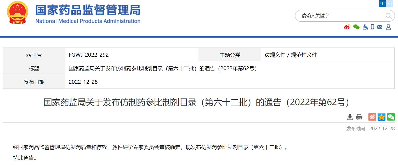 國家藥監(jiān)局關(guān)于發(fā)布仿制藥參比制劑目錄(第六十二批)的通告(2022年第62號)