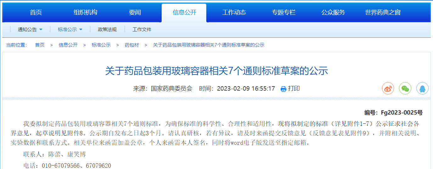 關(guān)于藥品包裝用玻璃容器相關(guān)7個通則標(biāo)準(zhǔn)草案的公示