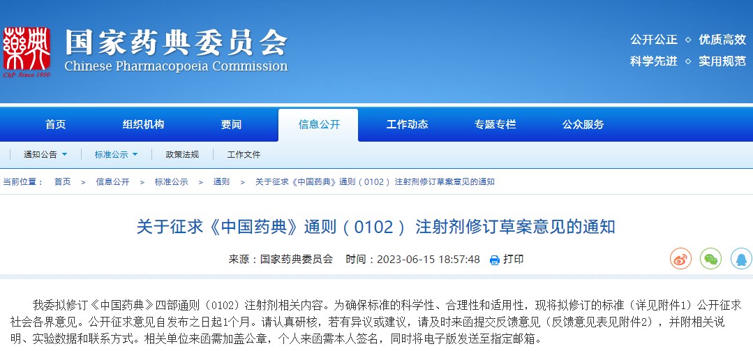 政策法規(guī) || 《中國(guó)藥典》通則(0102) 注射劑修訂草案意見(附本周法規(guī)概覽06.12-06.16))