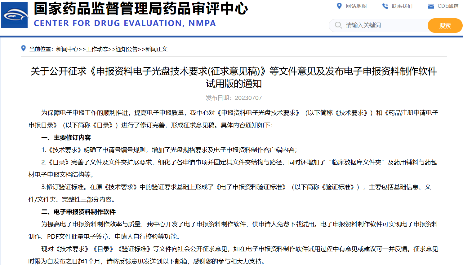 關(guān)于公開征求《申報資料電子光盤技術(shù)要求(征求意見稿)》等文件意見及發(fā)布電子申報資料制作軟件試用版的通知