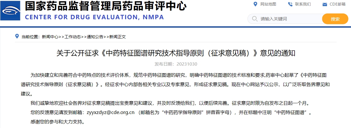 關(guān)于公開征求《中藥特征圖譜研究技術(shù)指導(dǎo)原則(征求意見稿)》意見的通知