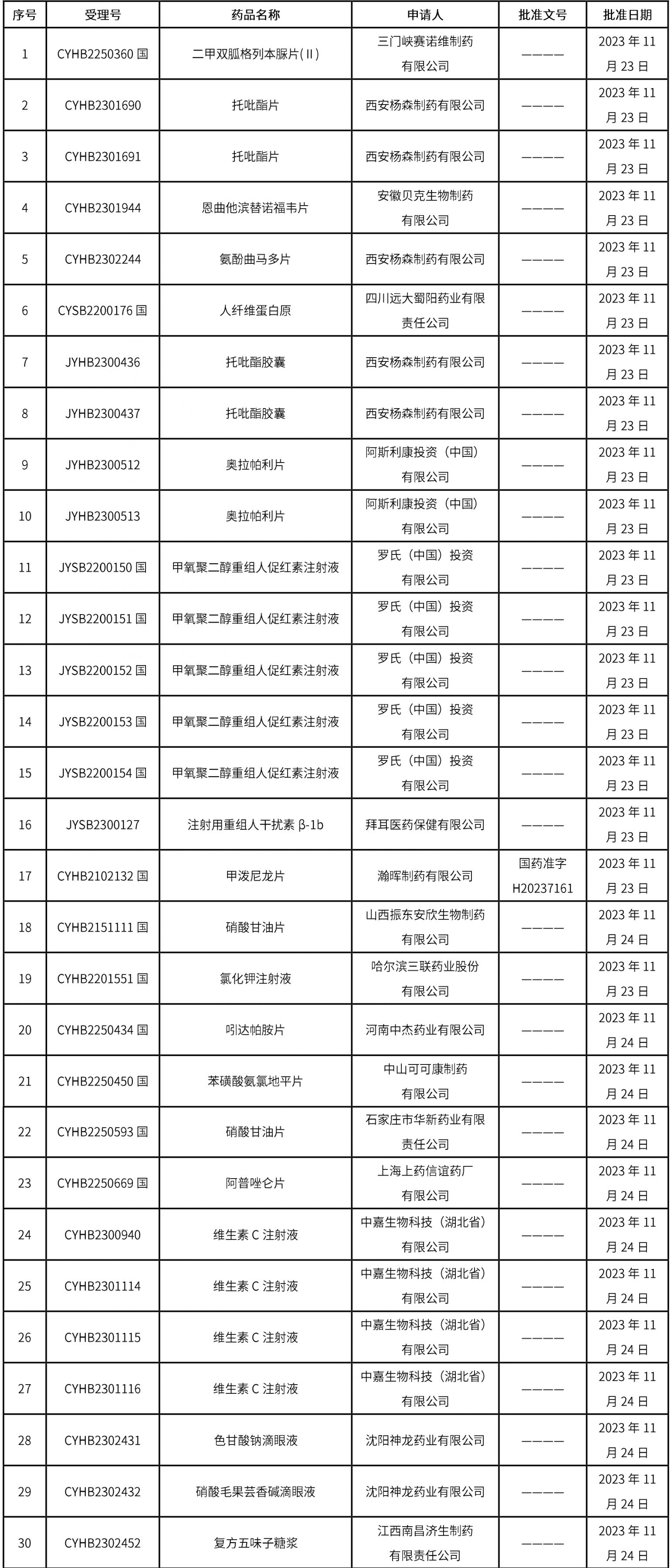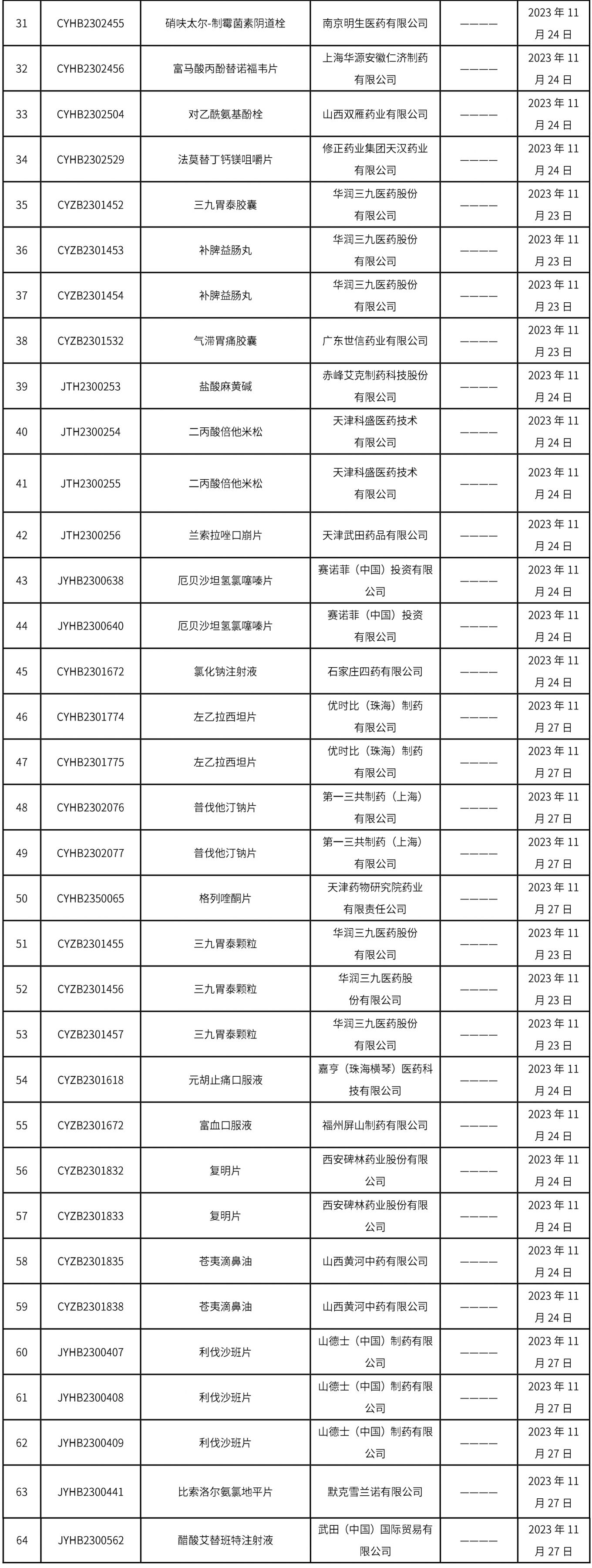1.截止2023年12月01日 15:30本周發(fā)布64個(gè)待領(lǐng)取藥品批準(zhǔn)證明文件,其中注射液13個(gè),一致性評(píng)價(jià)品種7個(gè)。