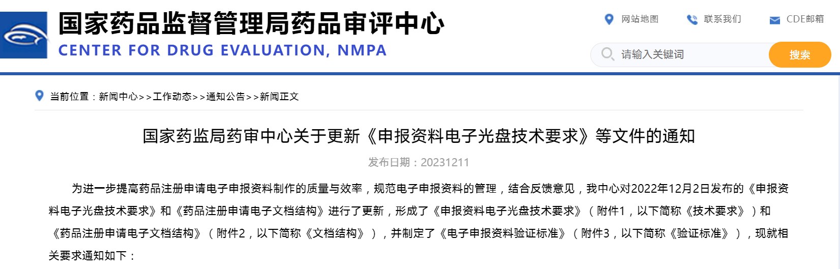 國家藥監(jiān)局藥審中心關(guān)于更新《申報(bào)資料電子光盤技術(shù)要求》等文件的通知