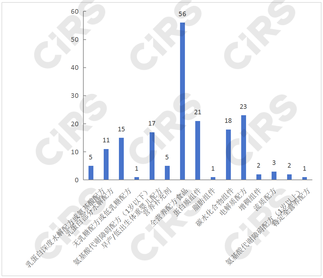 目前,已獲批產(chǎn)品中有54款為特殊醫(yī)學(xué)用途嬰兒配方食品,占到了總數(shù)的30%,包括5款乳蛋白深度水解配方或氨基酸配方、11款乳蛋白部分水解配方、15款無乳糖或低乳糖配方、1款氨基酸代謝障礙配方、17款早產(chǎn)/低出生體重嬰兒配方、5款營(yíng)養(yǎng)補(bǔ)充劑;70款為非全營(yíng)養(yǎng)配方食品,包括21款蛋白質(zhì)組件、1款脂肪組件、18款碳水化合物組件、23款電解質(zhì)配方、2款增稠組件、3款流質(zhì)配方、2款氨基酸代謝障礙配方(1歲以上),占總數(shù)的39%;56款為全營(yíng)養(yǎng)配方食品,占總數(shù)的32%,包括9款全營(yíng)養(yǎng)配方食品(1-10歲)和47款全營(yíng)養(yǎng)配方食品(1歲以上);特定全營(yíng)養(yǎng)配方食品僅有1款,為速熠素特殊醫(yī)學(xué)用途腫瘤全營(yíng)養(yǎng)配方食品。