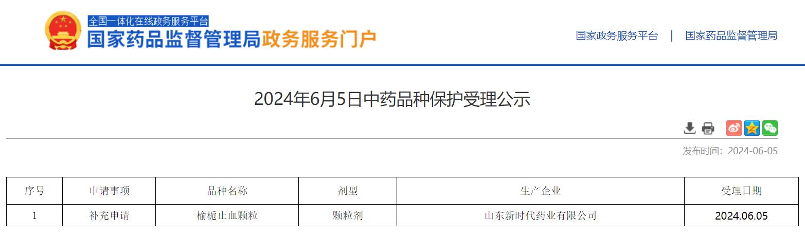 2024年6月5日中藥品種保護受理公示