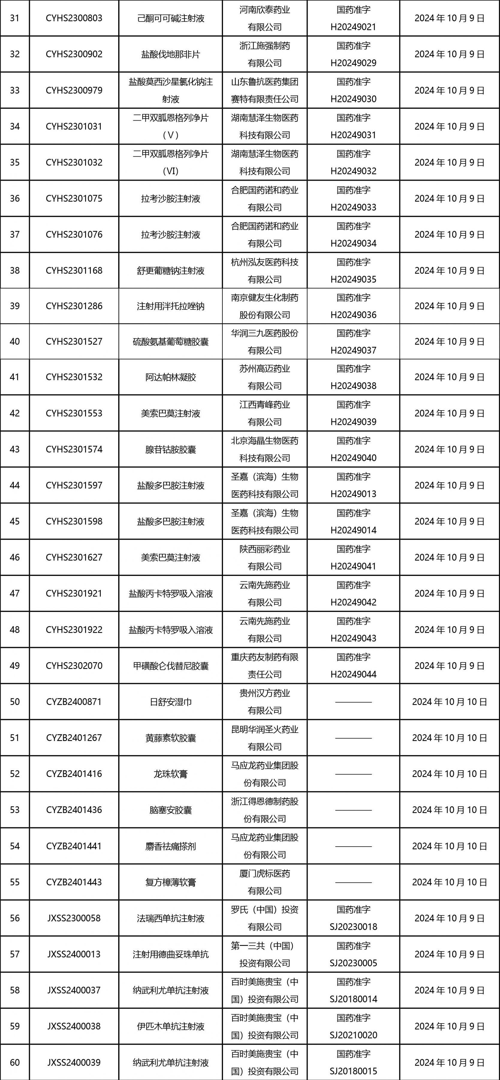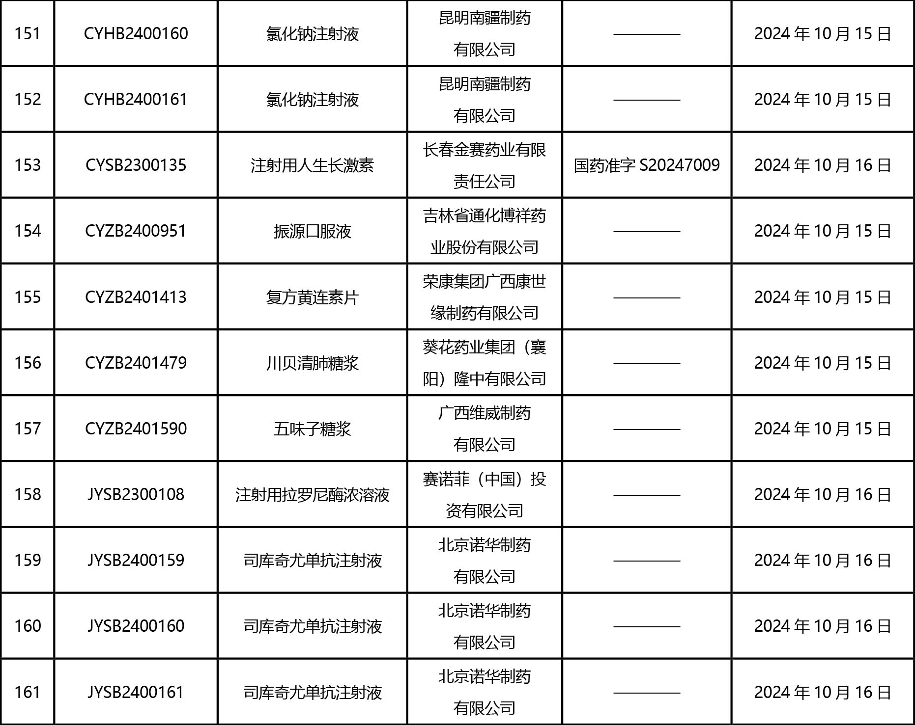 截止2024年10月18日 15:00本周發(fā)布161個待領取藥品批準證明文件,其中注射液84個,一致性評價品種30個。